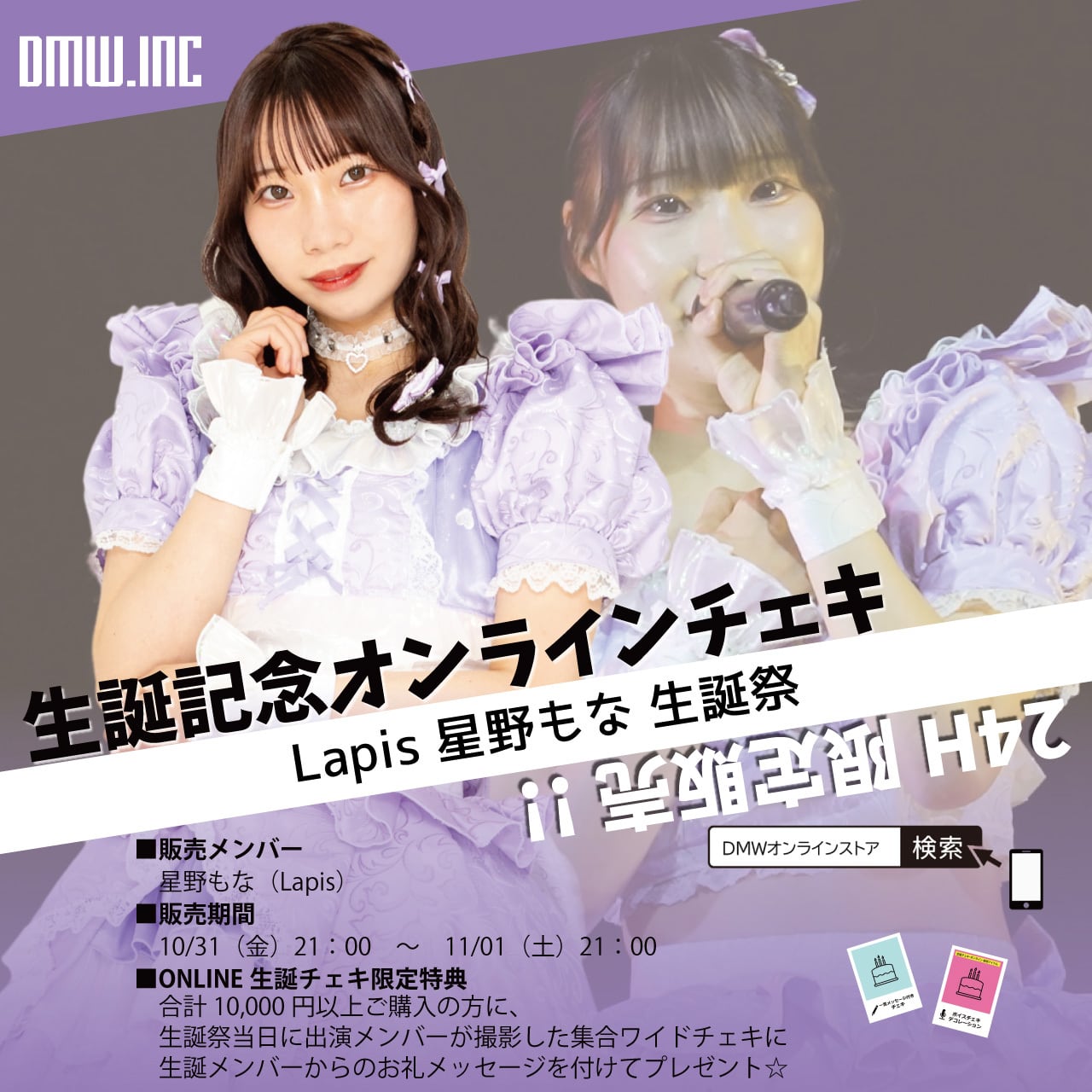 DMWグループで生誕祭を開催するメンバーが生誕祭で着用する衣装でのチェキのオンライン販売です。